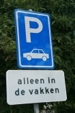 Ik zie de school al. Kijk: er staan auto's geparkeerd in de voortuinen van huizen. Waarom hebben ze in de tuin geparkeerd, dat mag toch helemaal niet? Ik moet daar ook helemaal omheen met mijn fiets. Gevaarlijk hoor! Soms komen de auto's hier hard aanrijden, het lijkt wel of ze altijd haast hebben. Raar trouwens dat ze daar hun auto parkeren. Ik weet precies welke auto’s er vaak in de tuintjes geparkeerd staan, hier heb ik op gelet. Maar…er staat toch een blauw bord in de straat waarop staat : alleen parkeren in de vakken?! Nu snap ik het niet meer.