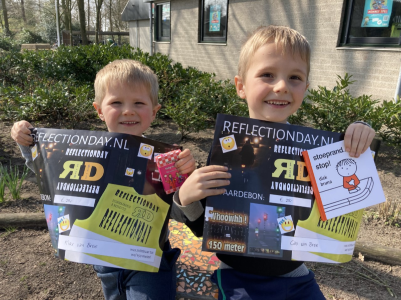 In de wintermaanden hebben wij als school meegedaan aan Reflectionday. Een project dat de zichtbaarheid en veiligheid in het verkeer onder de aandacht wil brengen door het stimuleren van het dragen van reflecterende veiligheidshesjes. Daarbij konden kinderen (als ze gefotografeerd werden tijdens het fietsen/wandelen met een veiligheidshesje) kans maken op een prijs.